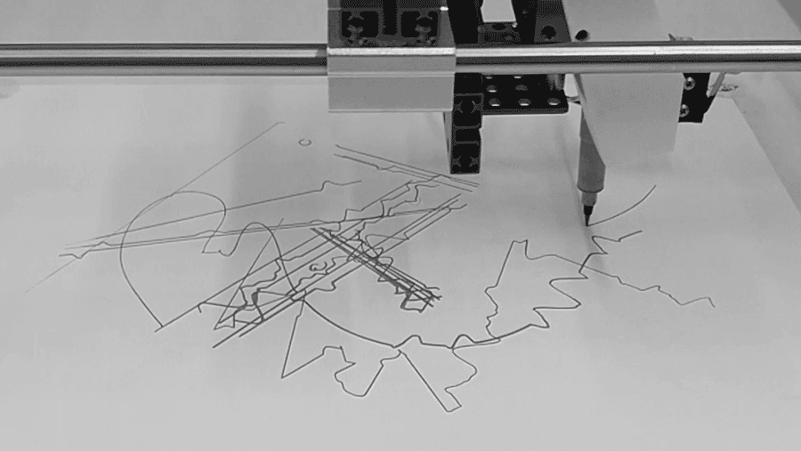 Each act of drawing, even using the same pre-programmed image, becomes inherently unique, incorporating the unavoidable surrounding noise into a semi-improvised act.