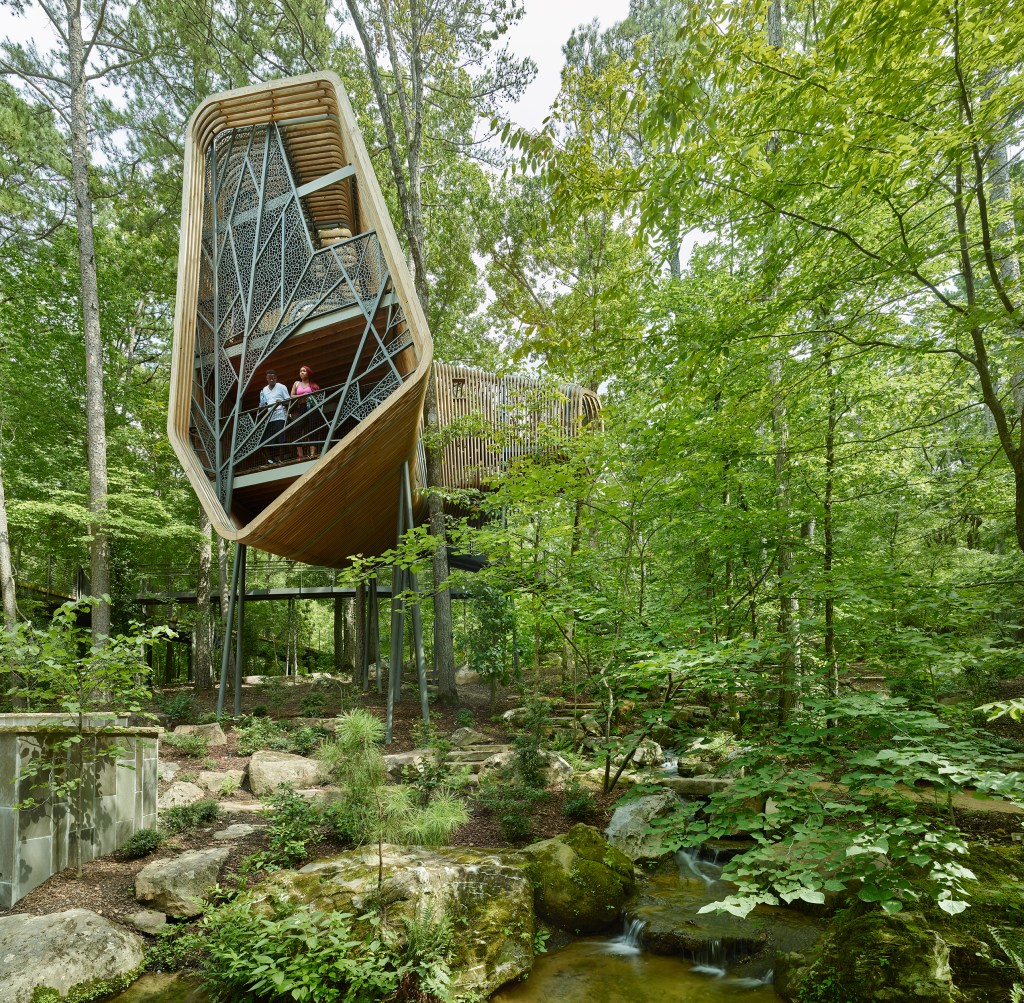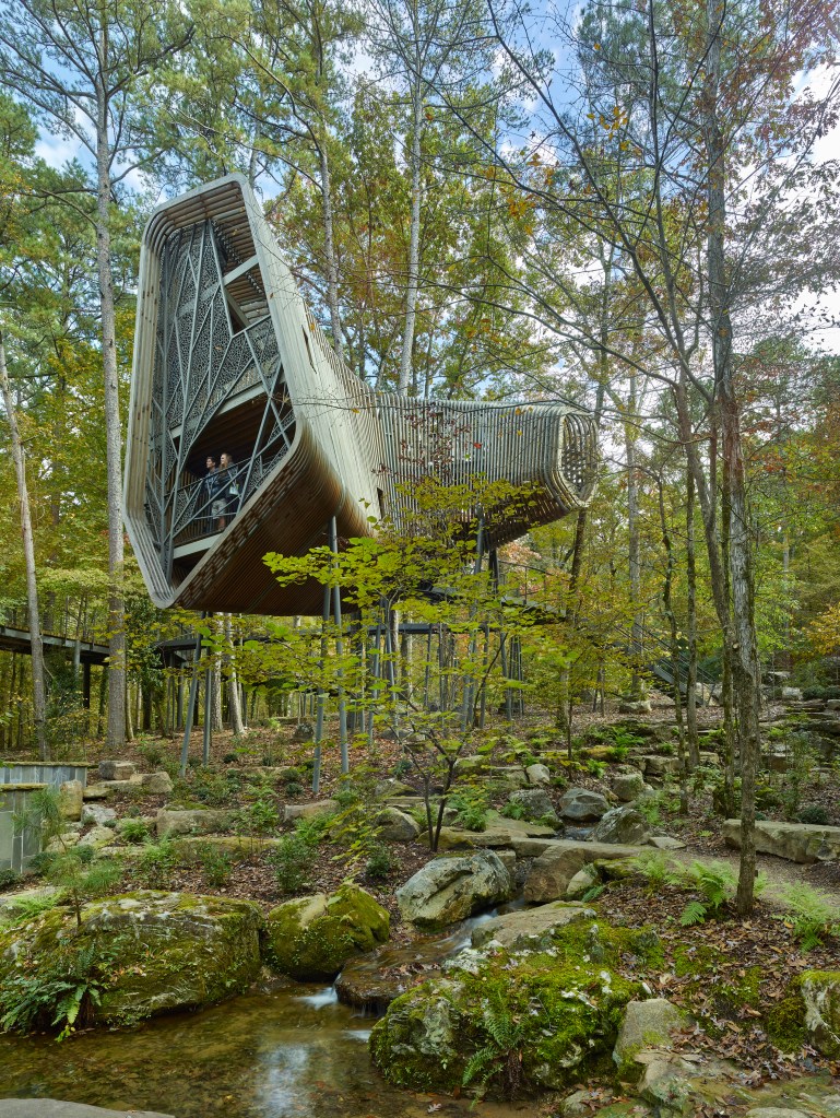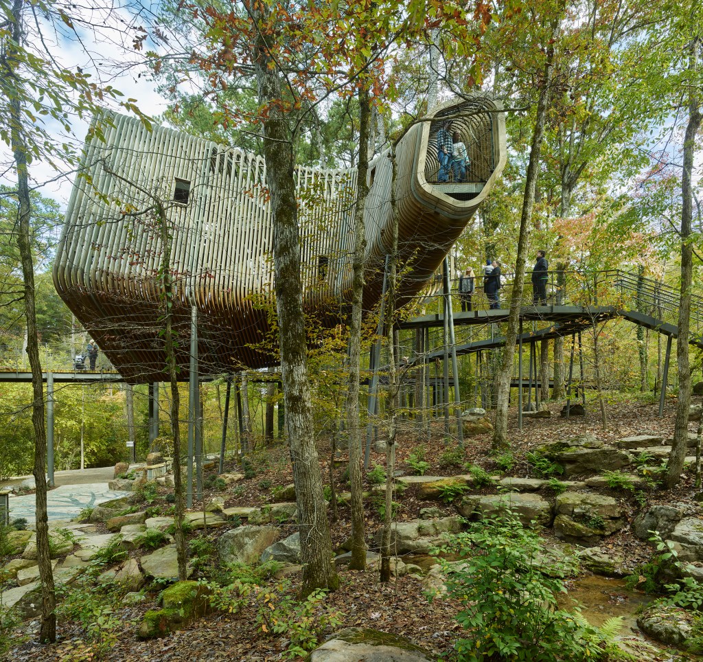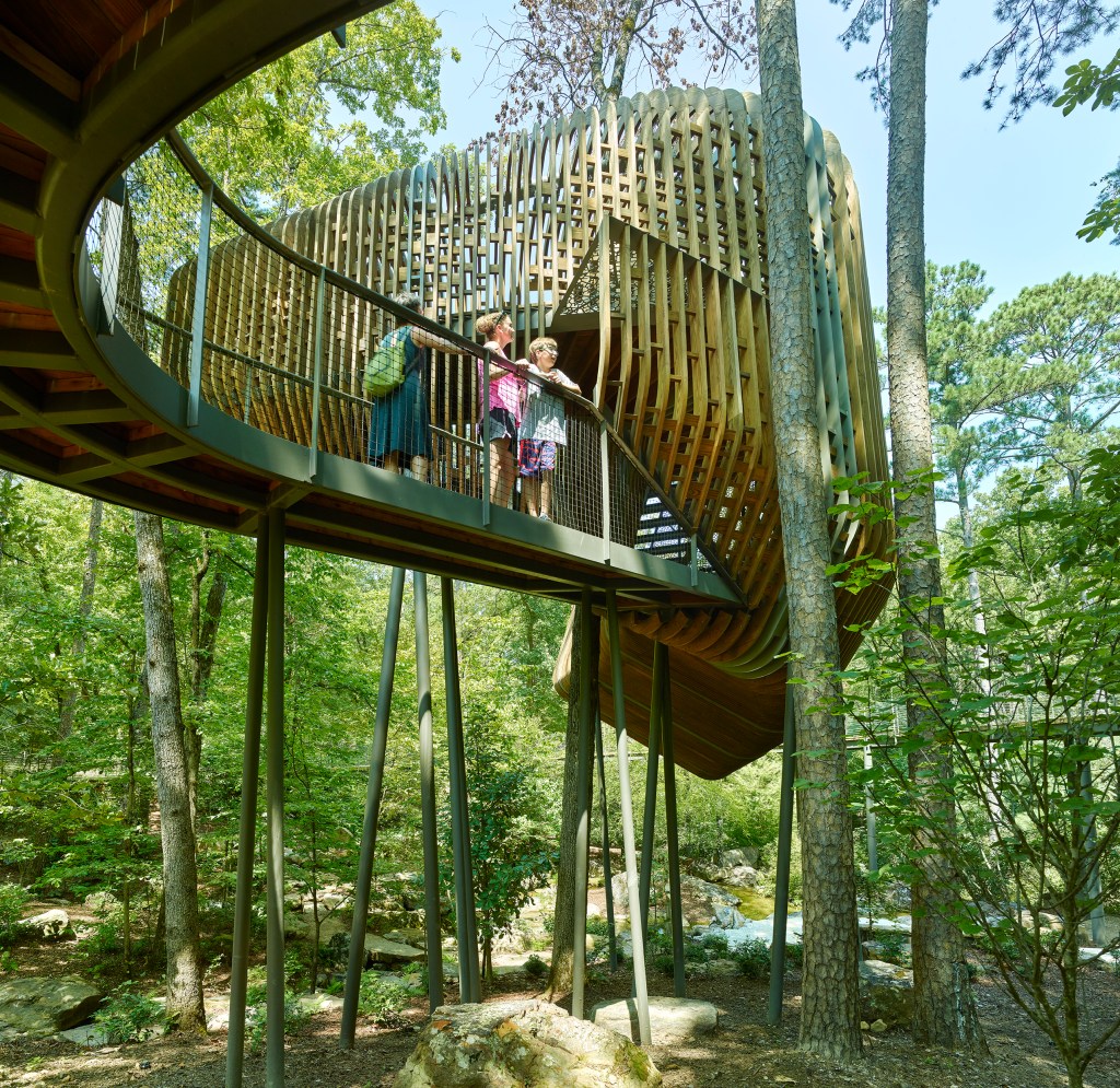 Garvan Woodland Gardens is a University of Arkansas-owned botanical garden located in Hot Springs, Arkansas. The garden will play host to three “tree houses” that will provide an interactive and playful educational experience for children. Each of the houses will teach visitors about a separate topic: insects + pollination (entomology), plants + forest (dendrology), and birds + flight / adaptation (ornithology).