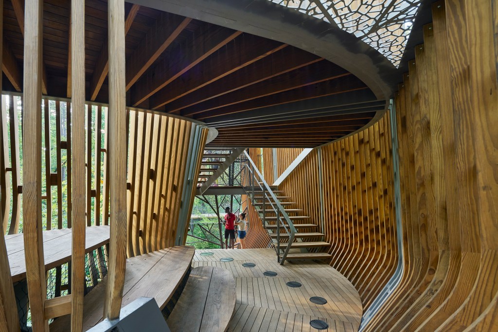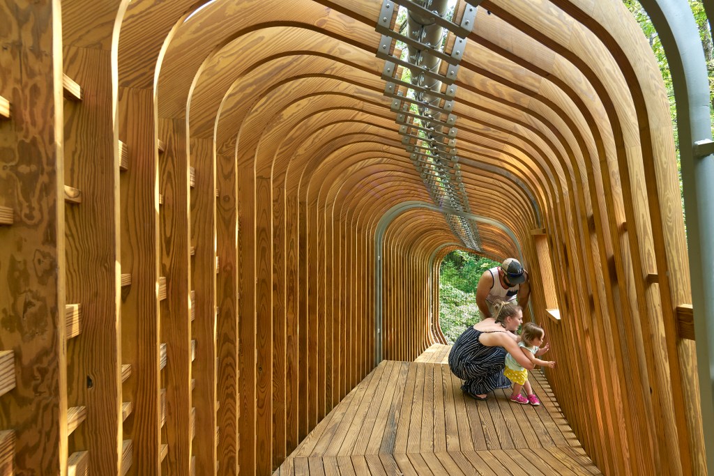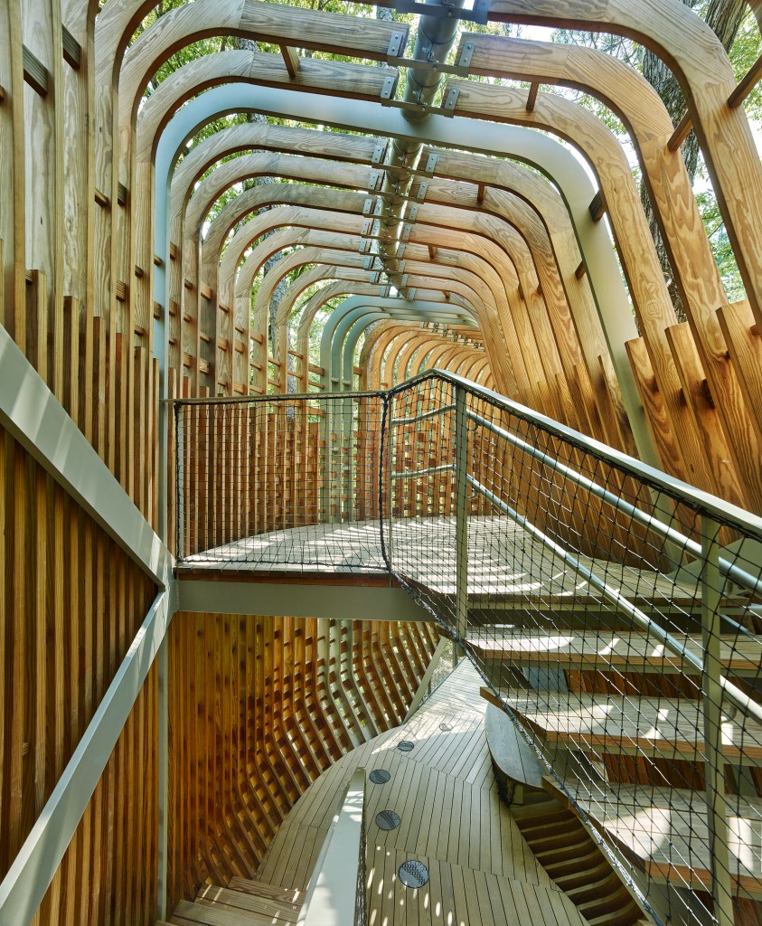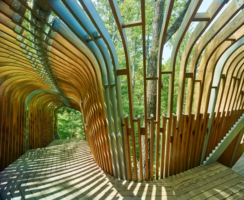 Garvan Woodland Gardens is a University of Arkansas-owned botanical garden located in Hot Springs, Arkansas. The garden will play host to three “tree houses” that will provide an interactive and playful educational experience for children. Each of the houses will teach visitors about a separate topic: insects + pollination (entomology), plants + forest (dendrology), and birds + flight / adaptation (ornithology).