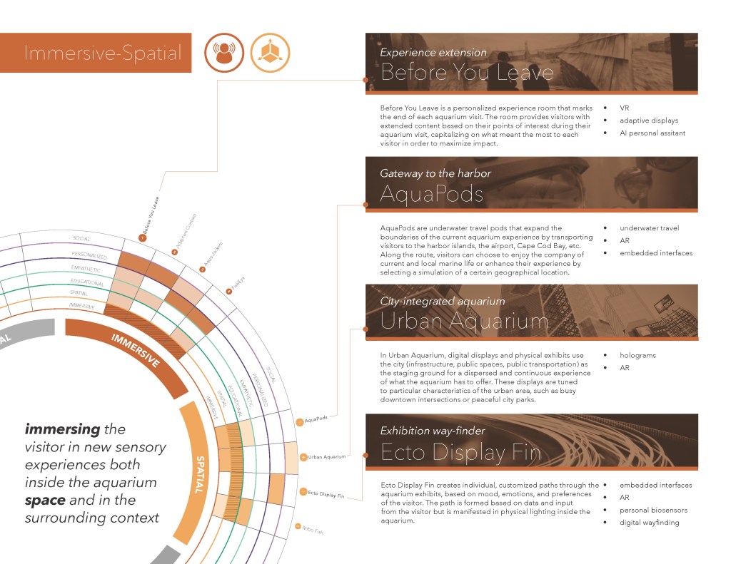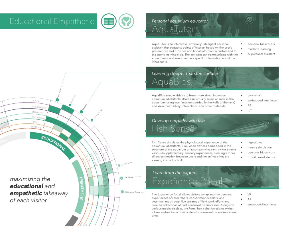 In addition, the themes were paired, allowing us to devise three stances on the experience of the future aquarium. These are that: