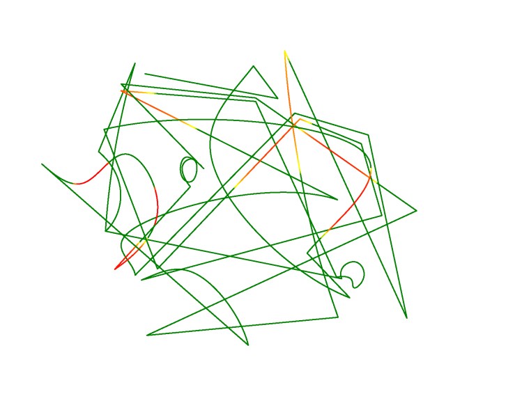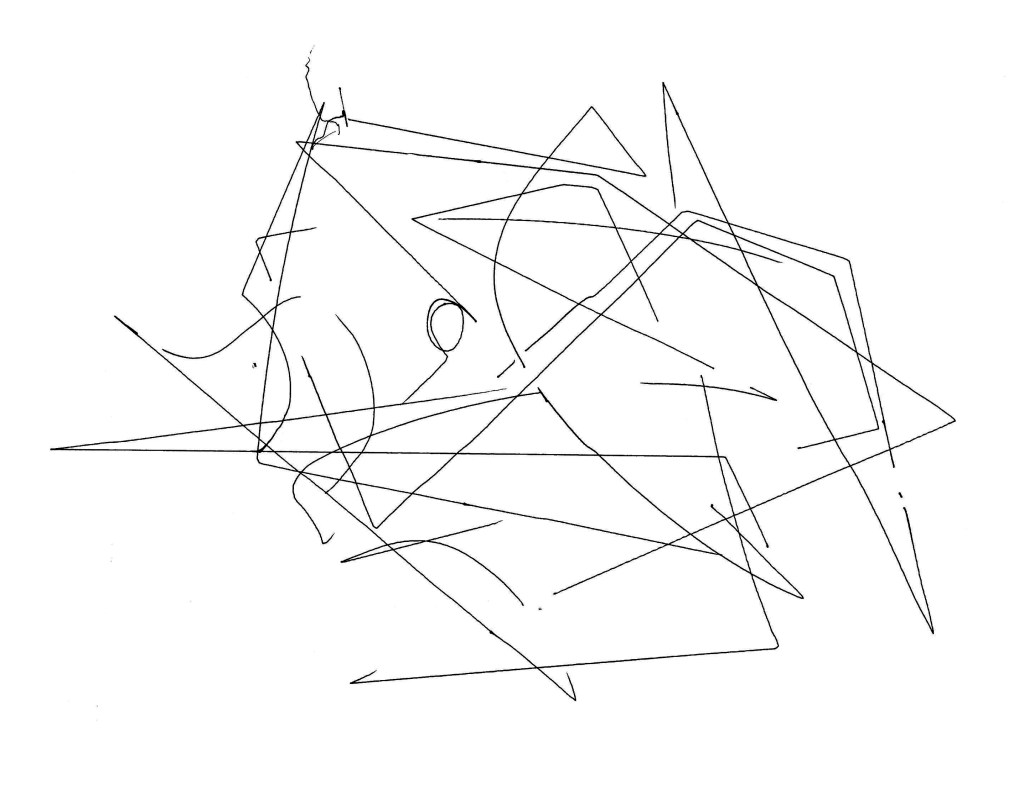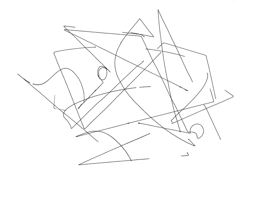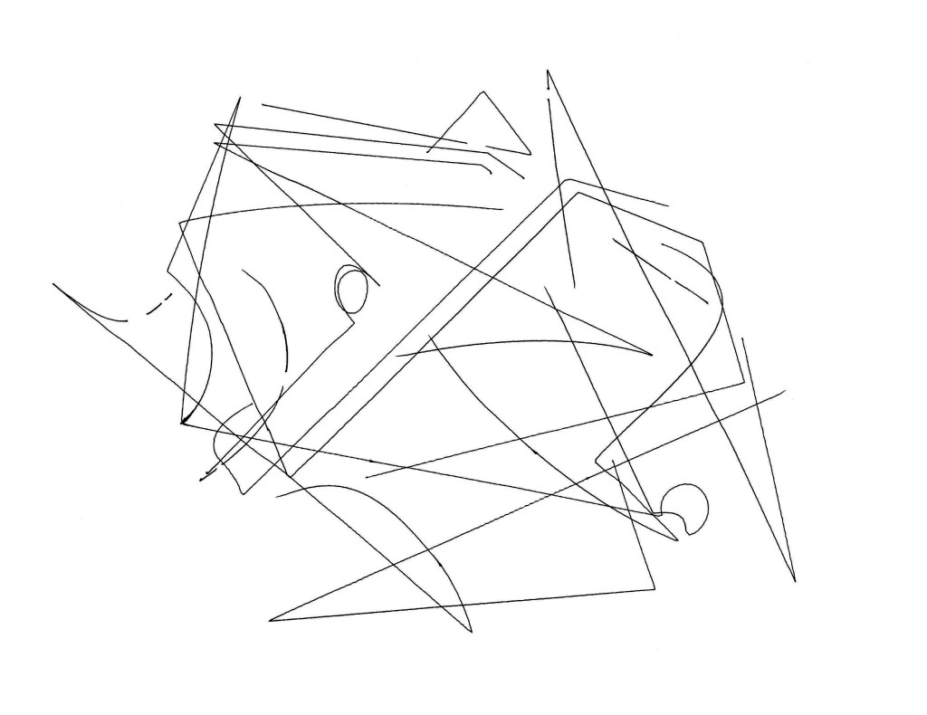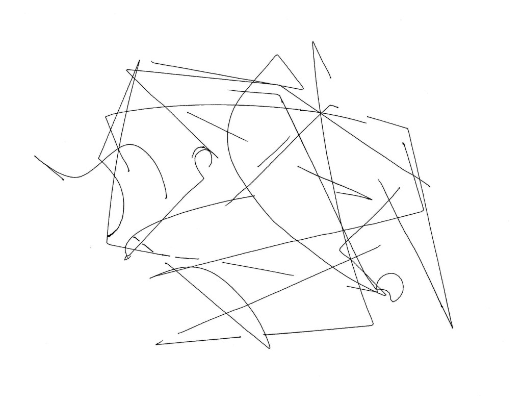 The machine creates an abstract, gestural, expressive drawing (in the style of Wassily Kandinsky and Paul Klee), pre-altered with a random speed profile such that the drawing is executed at various speeds throughout the process. The drawing is transformed from a standard machine plot to a hesitating, ambiguously-paced performance.